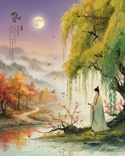 Tạc Trắng Mặt Trăng Đỏ - Hình Nền AI Art Phong Cách Nhật Bản
