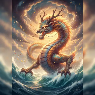Rồng Hoa Sen Phong Thủy - Hình Nền AI Art 4K