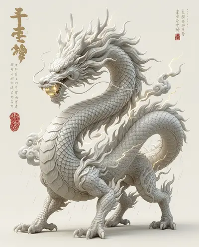 Rồng Trắng Cosmic Neon - Hình Nền AI Art 4K