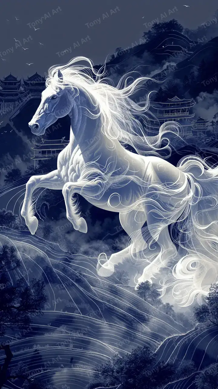 300 DPINgựa Trắng Phong Thủy - Hình Nền AI Art 4K Neon