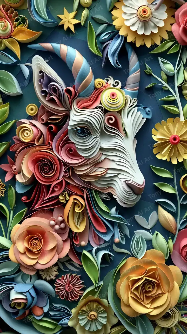 Hình nền sư tử 3D bao quanh hoa lá sáng tạo, phong cách paper art AI, nền xanh lục, tải 4K miễn phí.