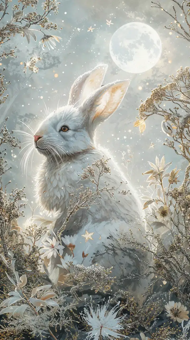 300 DPIThỏ Bạc Dưới Ánh Trăng - Hình Nền AI Art Fantasy 4K