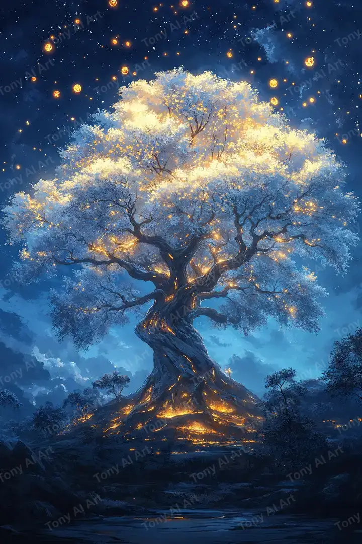 300 DPICây Vàng Phát Sáng - Hình Nền AI Art 4K Fantasy Cosmic