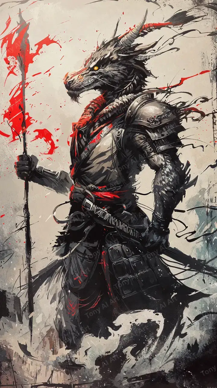300 DPIRồng Mực Đỏ - Hình Nền AI Art Thần Thoại 4K