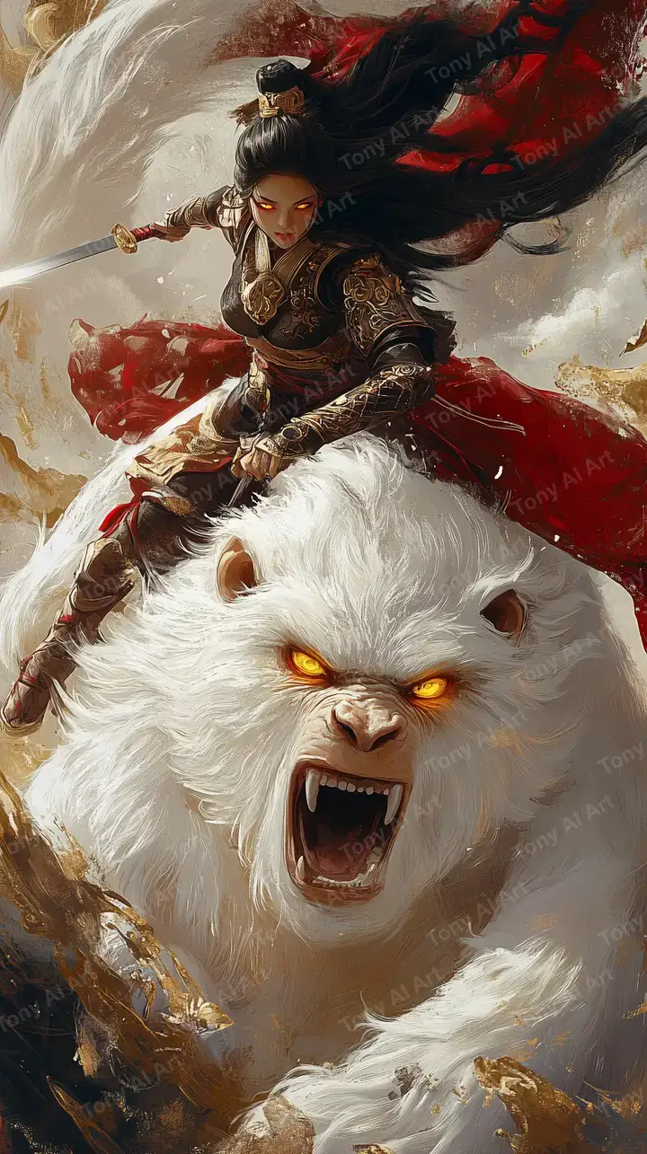 300 DPINữ Chiến Binh Linh Thú Trắng Phong Thủy - Hình Nền AI Art 4K