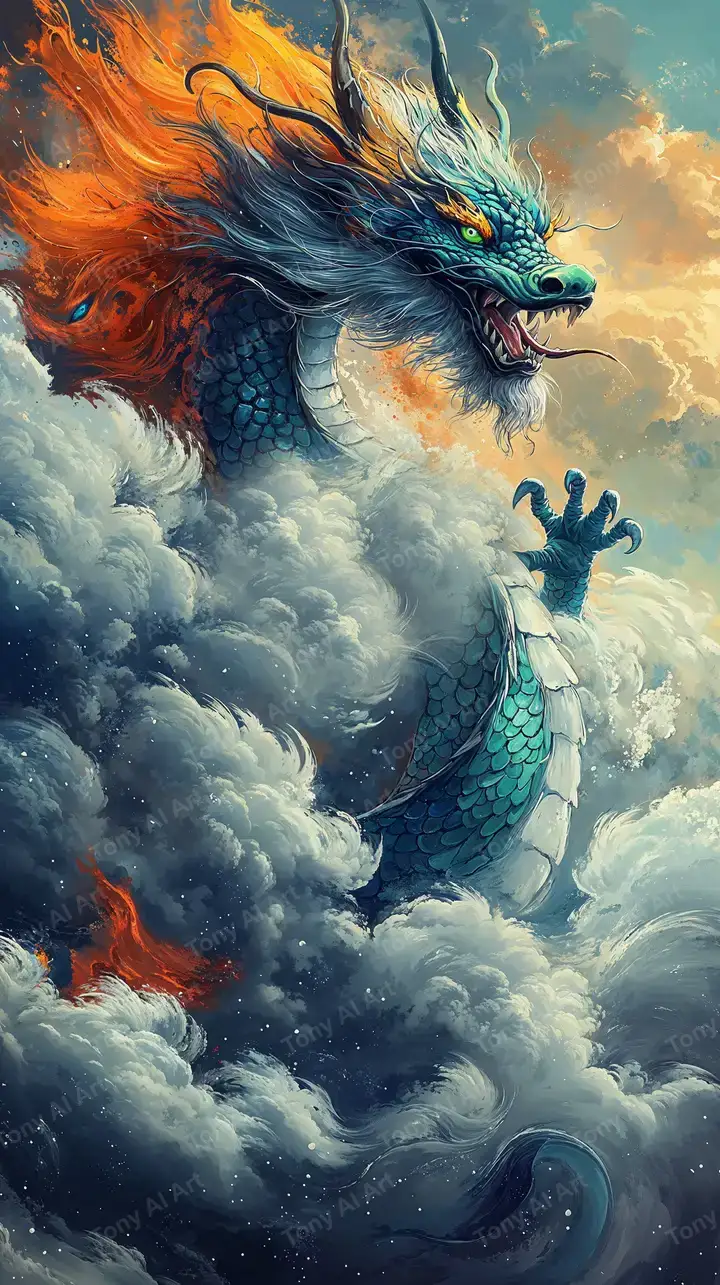300 DPIRồng Vàng Phong Thủy Trên Mây - Hình Nền AI Art 4K