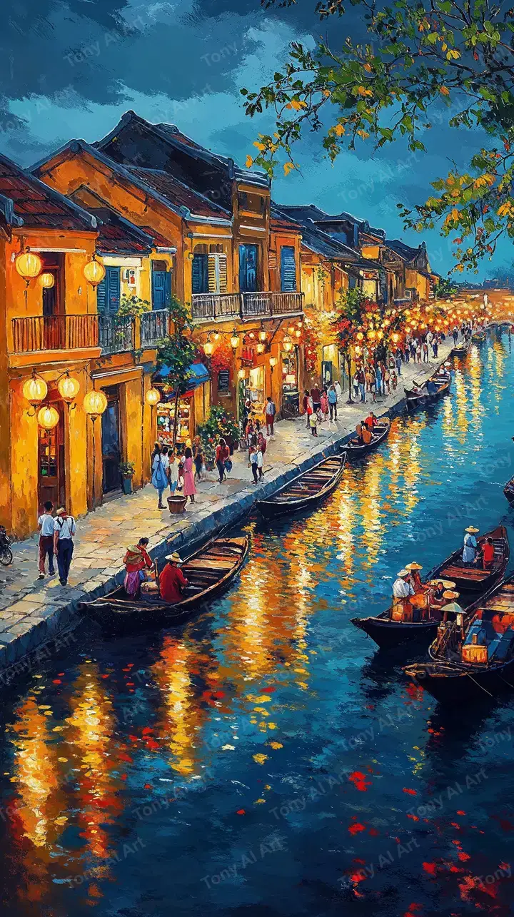 300 DPIPhố Cổ Hội An Đêm - Hình Nền AI Art 4K Việt Nam