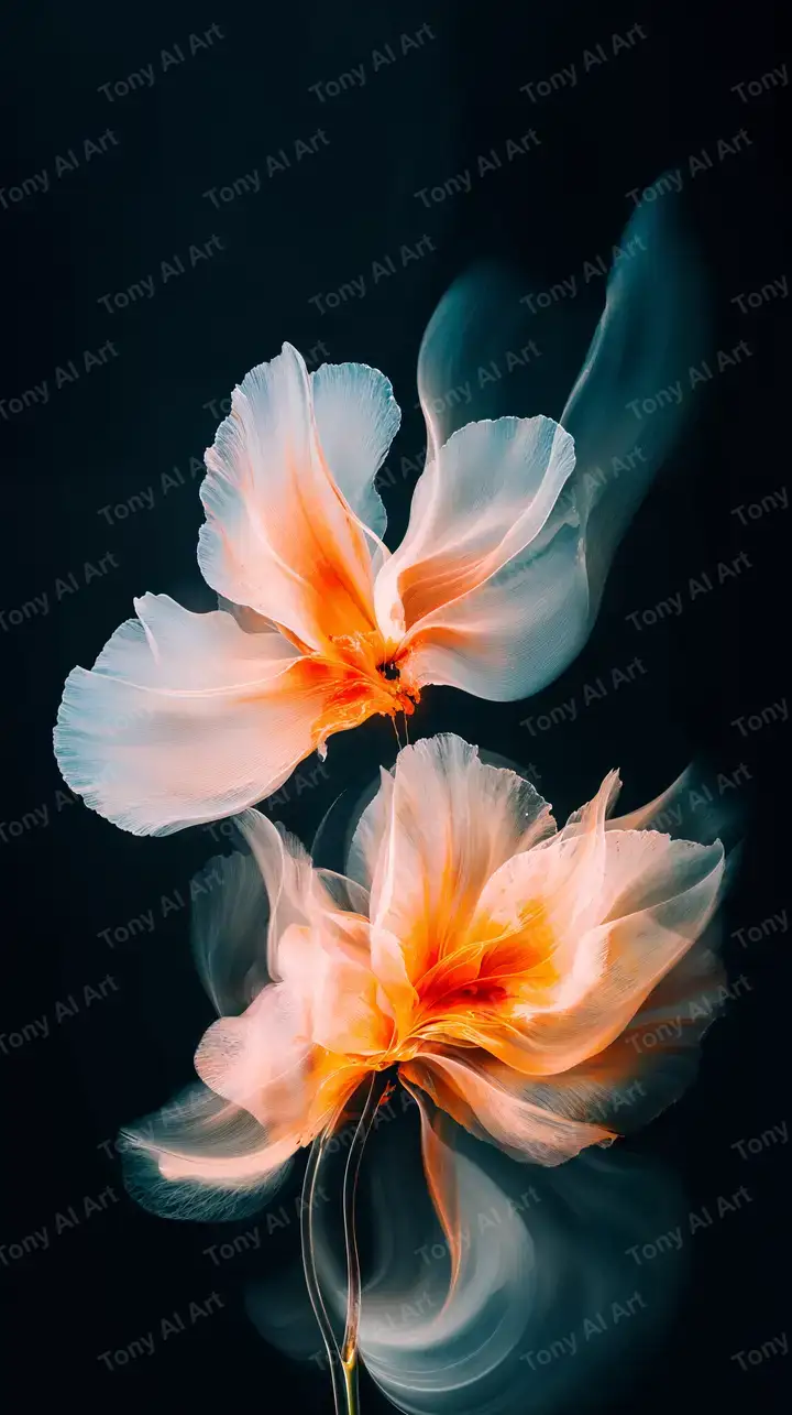 Hình nền hoa trắng cam với hiệu ứng glow mềm, tối giản hiện đại, AI art 4K HD tải miễn phí.