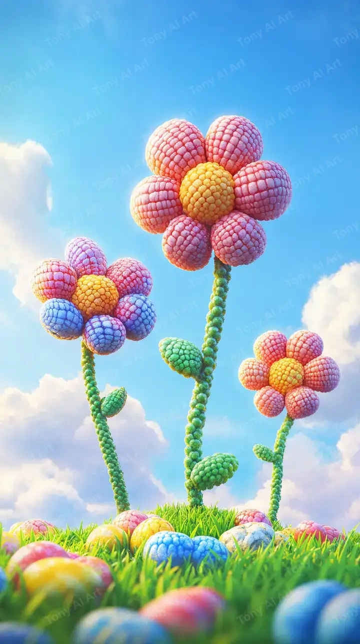 300 DPIHoa 3D Pastel Vui Nhộn - Hình Nền AI Art 4K