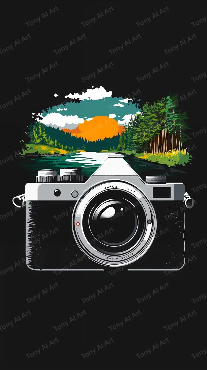 300 DPIMáy Ảnh Phong Cảnh - Hình Nền AI Art Retro 4K