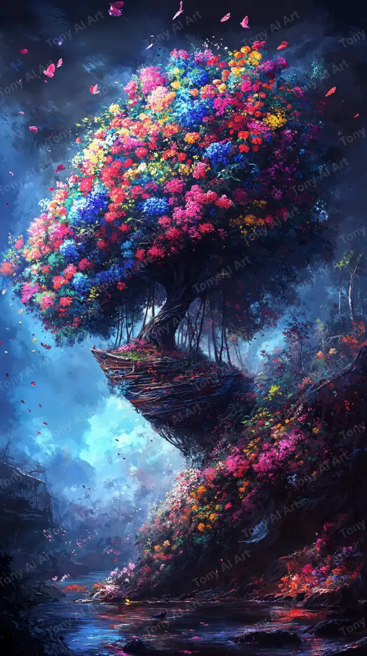 300 DPICây Hoa Khổng Lồ Huyền Ảo - Hình Nền AI Art 4K