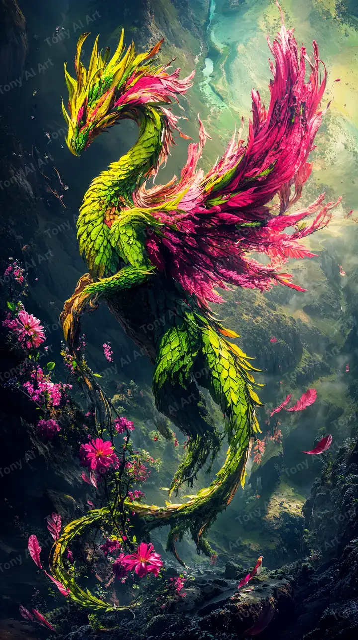 300 DPIRồng Phượng Hoàng Neon - Hình Nền AI Art 4K Huyền Ảo
