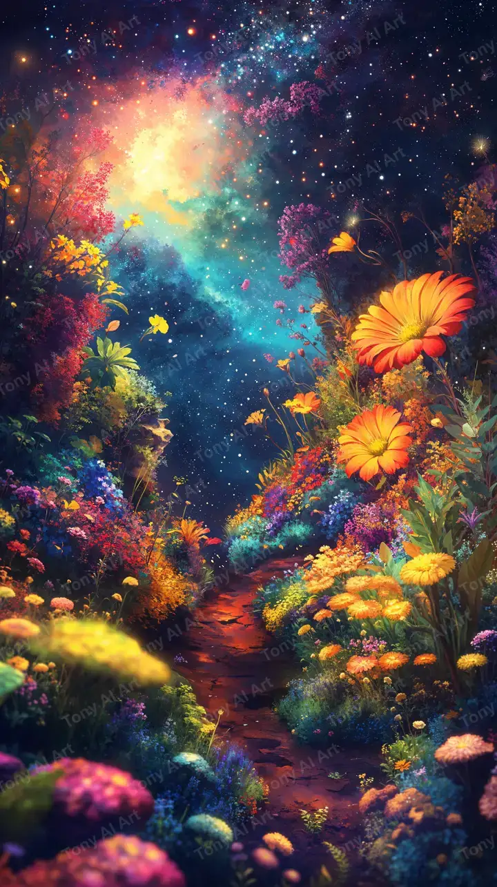 300 DPIHoa Cảnh Vũ Trụ - Hình Nền AI Art Cosmic Neon 4K