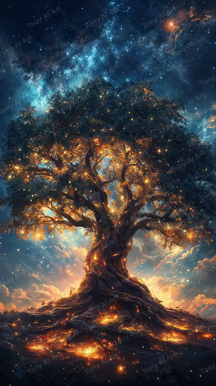 300 DPICây Đời Sống Vũ Trụ - Hình Nền AI Art 4K Phong Thủy