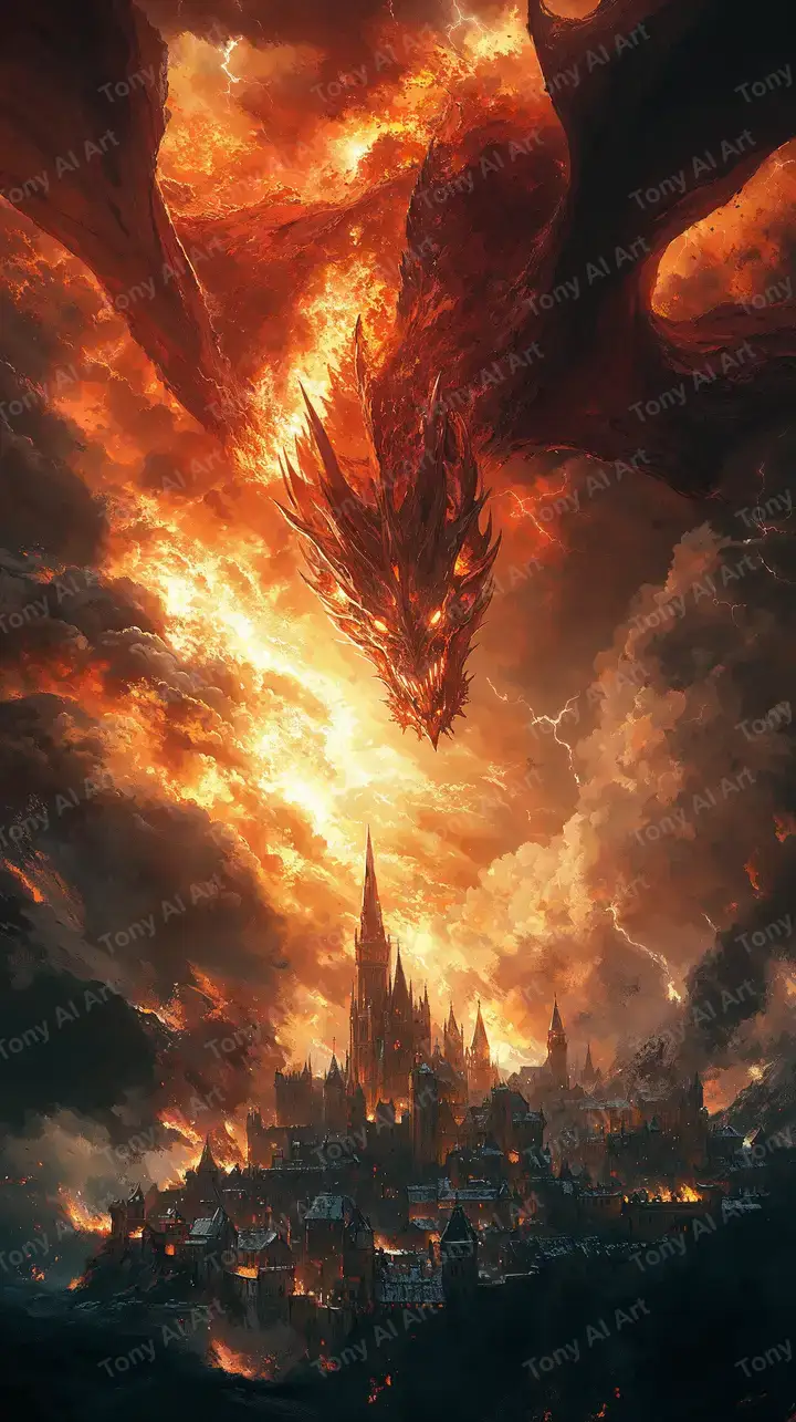 300 DPIRồng Lửa Phá Hủy Thành Phố - Hình Nền AI Art Fantasy 4K