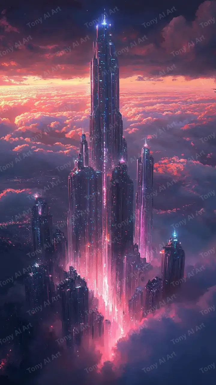Cặp Đôi & Tòa Tháp Neon - AI Art Fantasy 4K