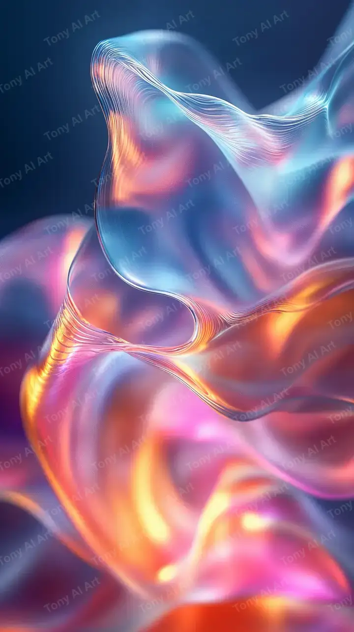 Hình nền neon cosmic AI art với hiệu ứng sóng chảy mượt, gradient xanh-hồng-vàng, tải miễn phí 4K.