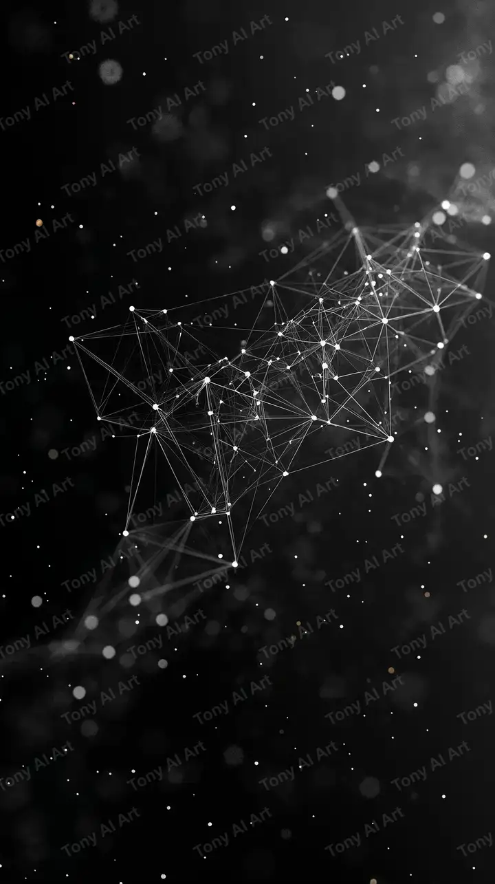 Hình nền kỹ thuật số với mạng lưới wireframe sáng, hiệu ứng bokeh tỏa sáng trên nền đen, tải miễn phí 4K.