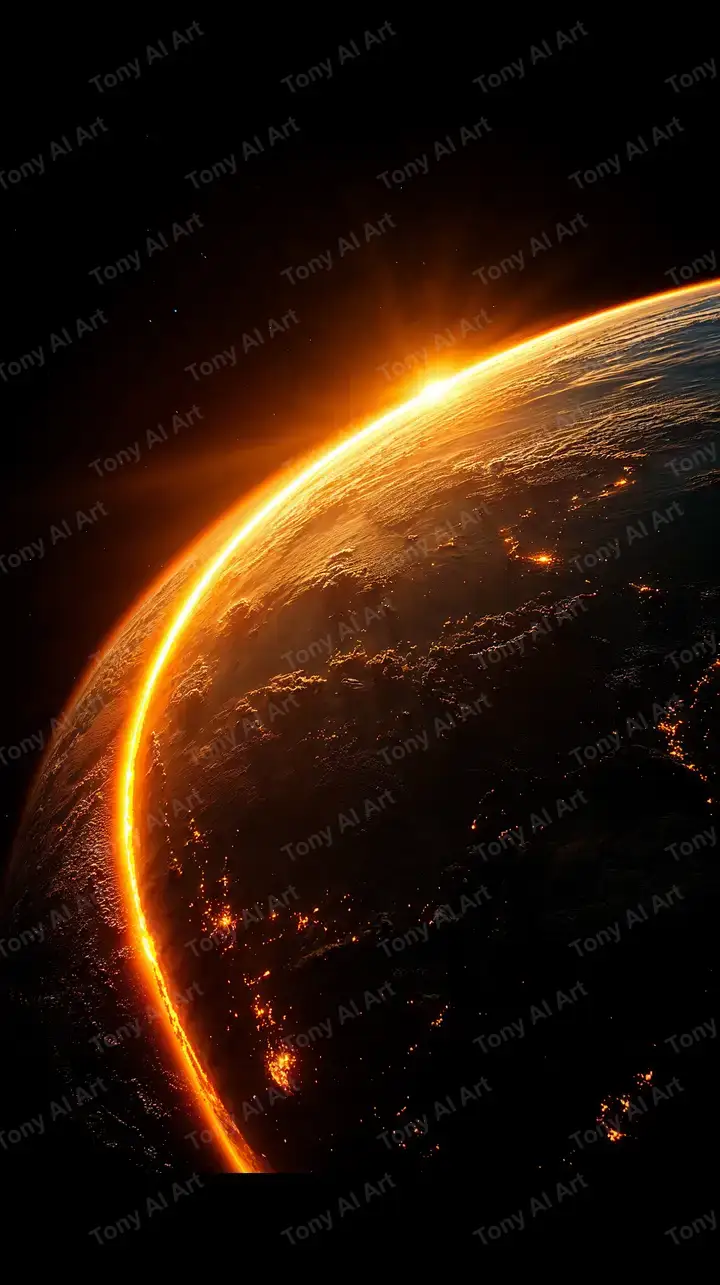 Hình nền hành tinh vàng trong vũ trụ, hiệu ứng neon glow cosmic, AI art 4K tải miễn phí.