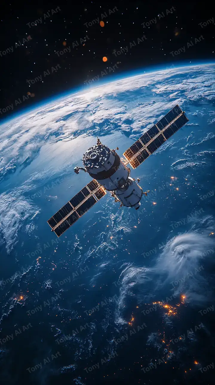 300 DPIVệ Tinh Quỹ Đạo Trái Đất - Hình Nền Cosmic AI Art 4K