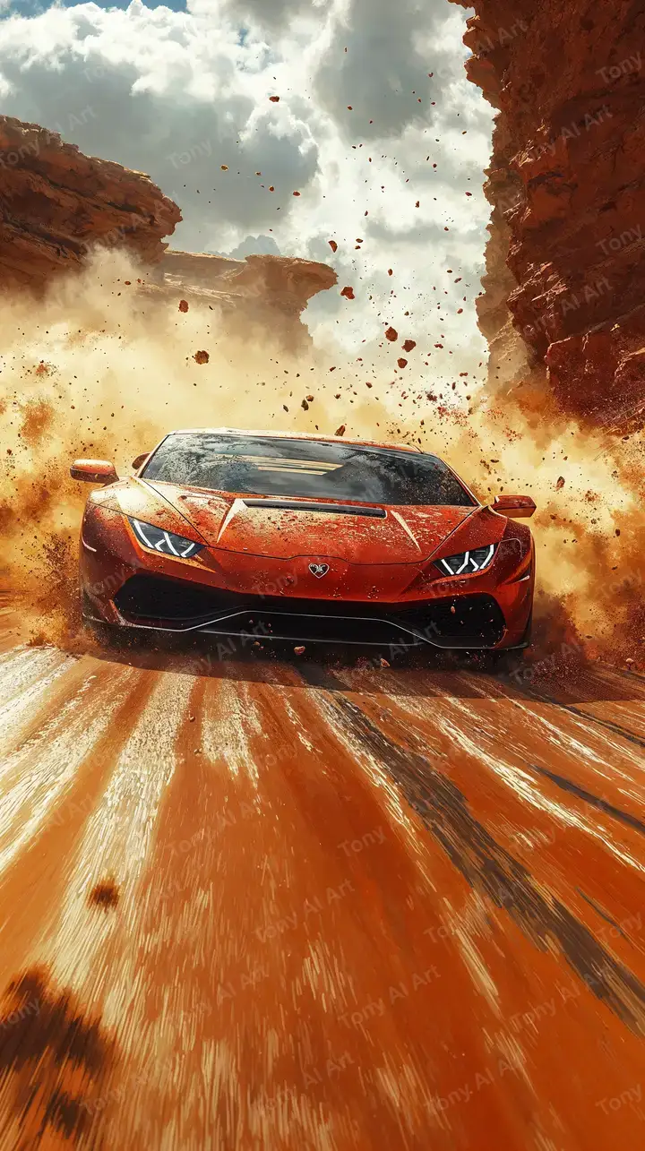300 DPILamborghini Đỏ Sa Mạc - Nổ Tung Bụi AI Art 4K