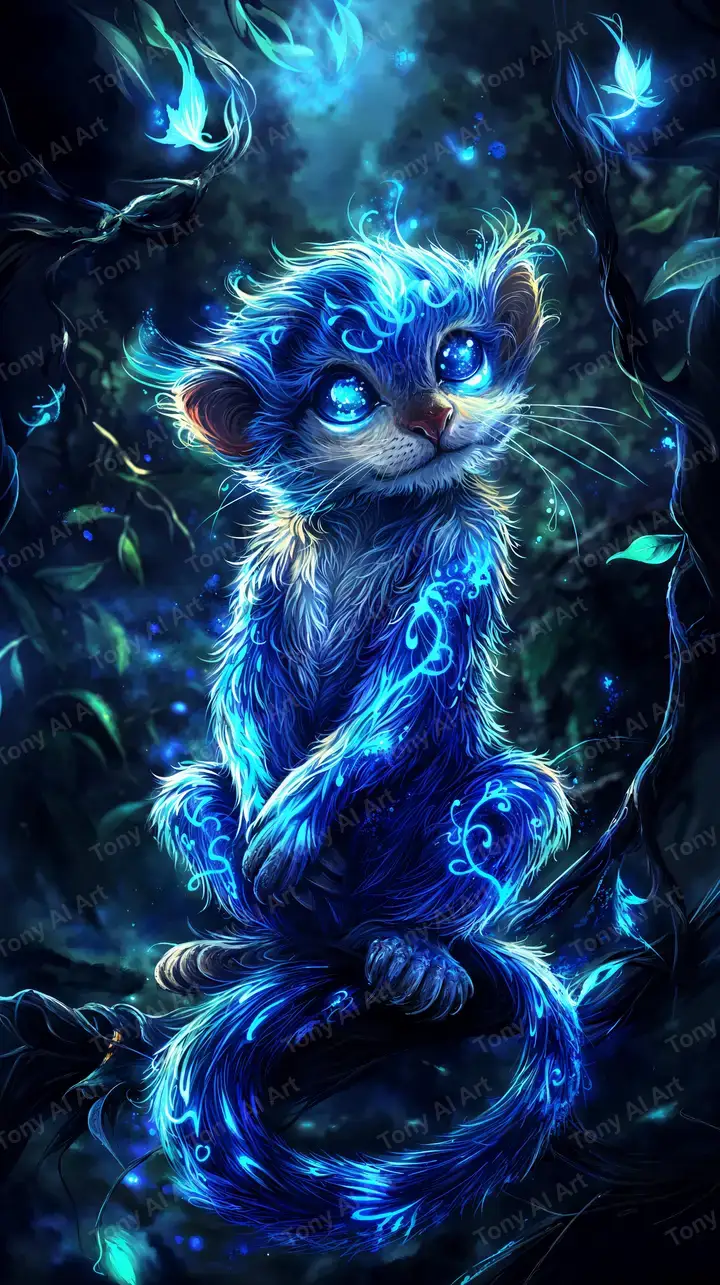 300 DPIMèo Neon Phát Sáng - Hình Nền AI Art 4K Kỳ Diệu