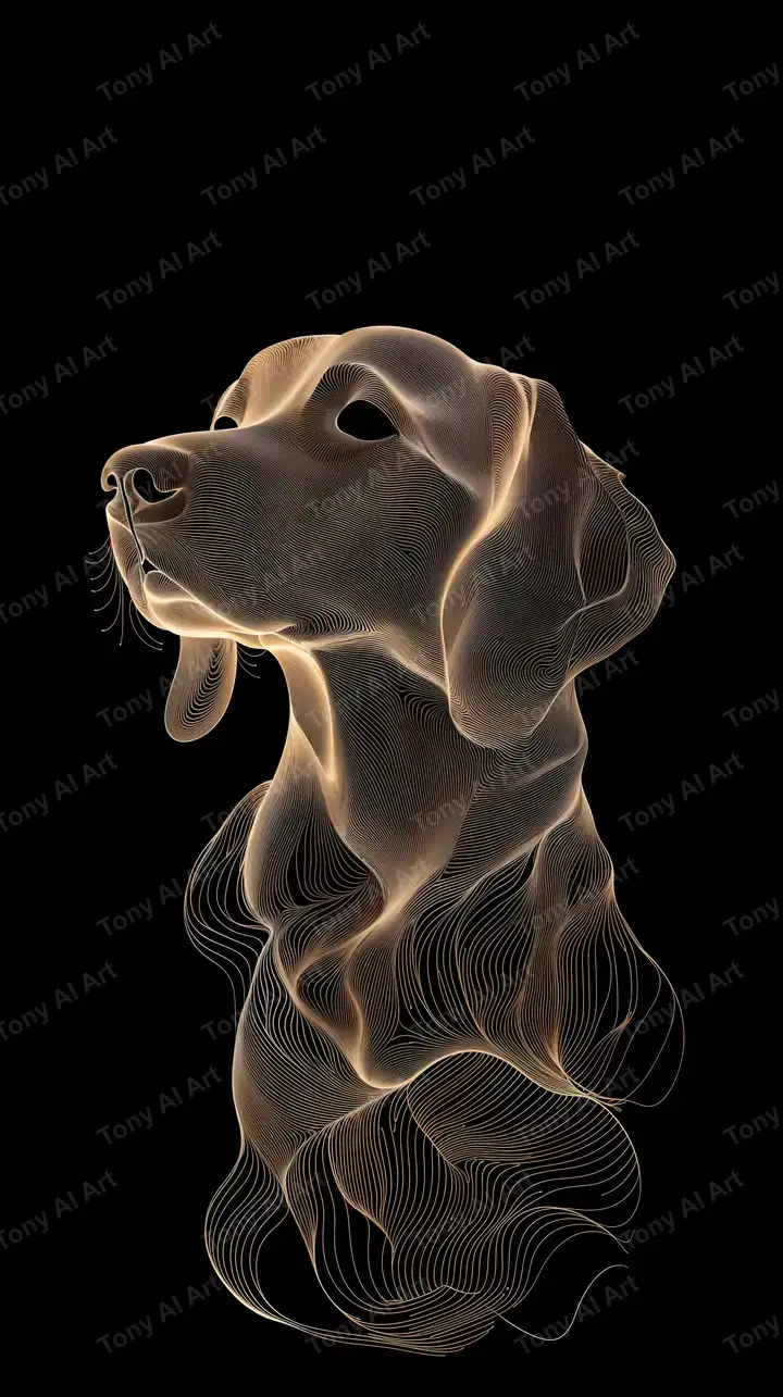 Hình nền chó neon vàng AI art với hiệu ứng wireframe tuyệt đẹp, tải miễn phí 4K.