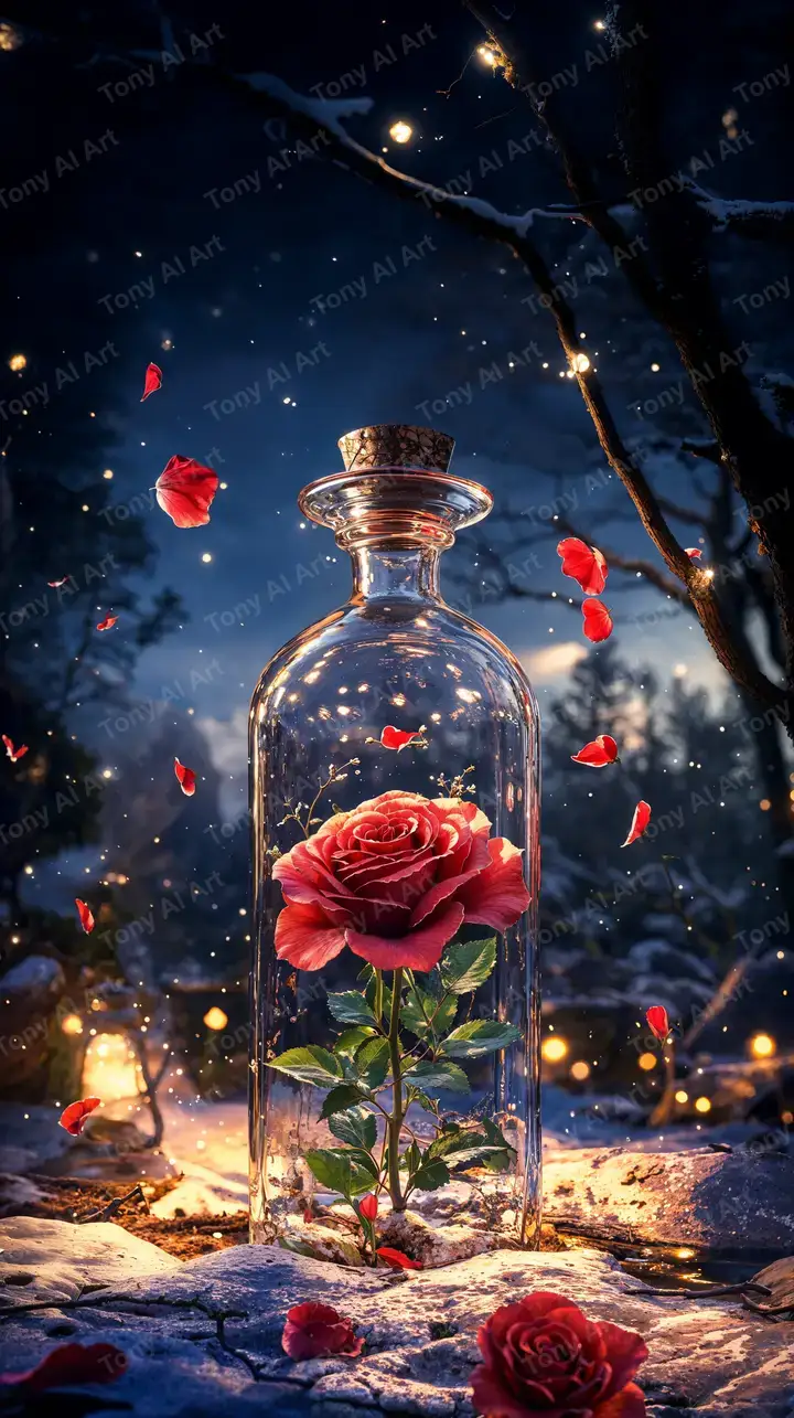 300 DPIHoa Hồng Phép Thuật Lọ Thủy Tinh - Hình Nền AI Art 4K