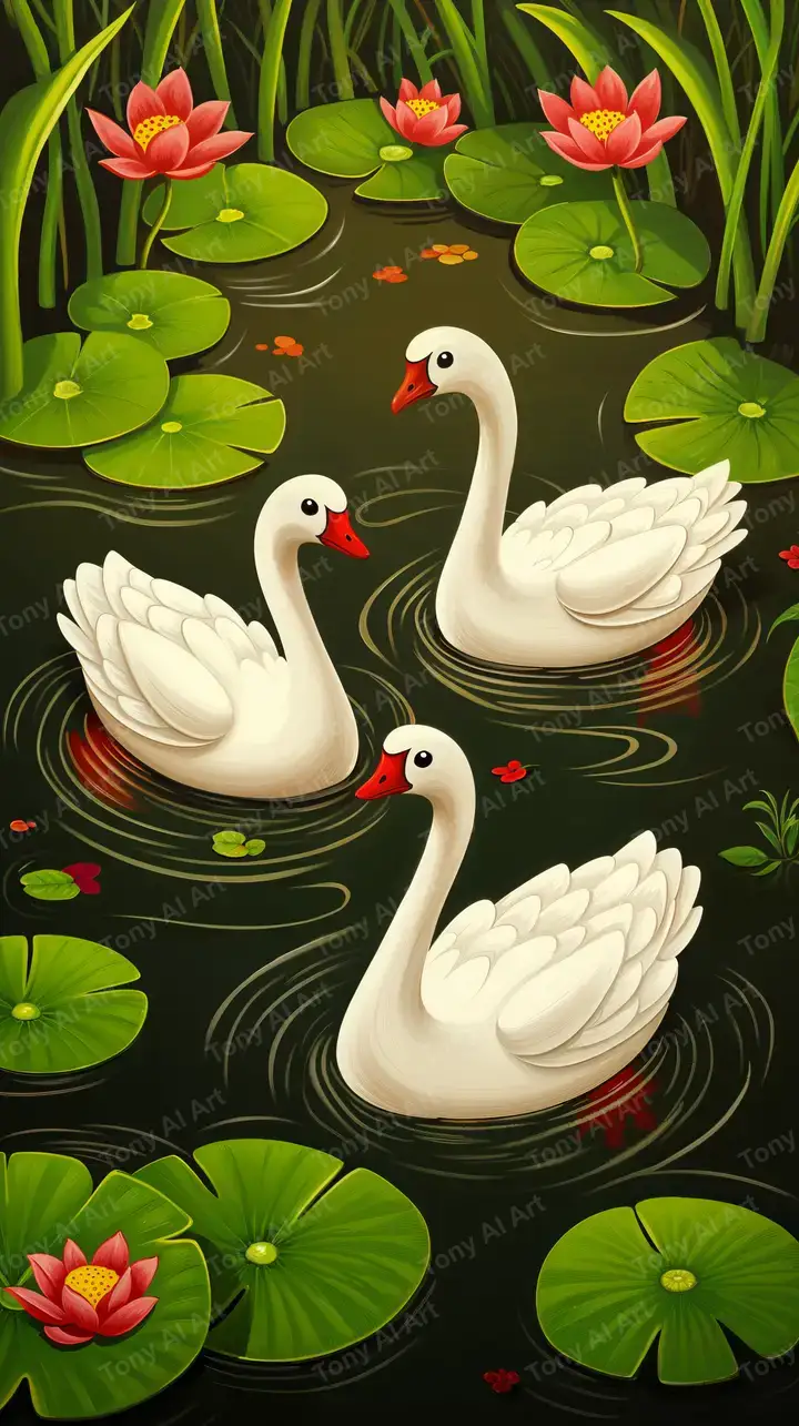 Hình nền thiên nga hoa sen phong thủy, AI art tuyệt đẹp với chi tiết cao, cá koi may mắn, tải miễn phí 4K.