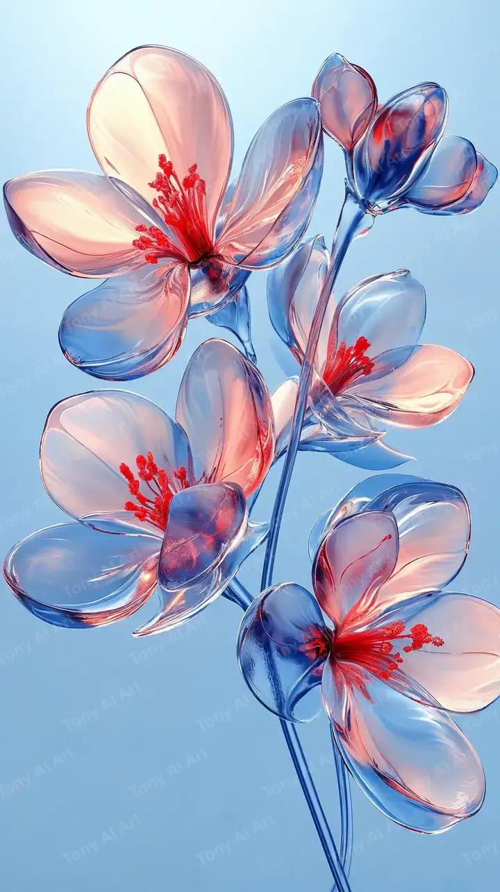 Hình nền hoa thủy tinh gradient xanh hồng, hiệu ứng glass art neon, tải 4K miễn phí.