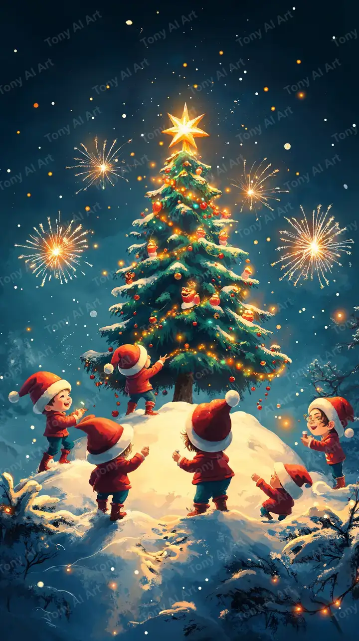 300 DPICây Thông Noel Ấm Áp - Hình Nền AI Art Lễ Hội 4K