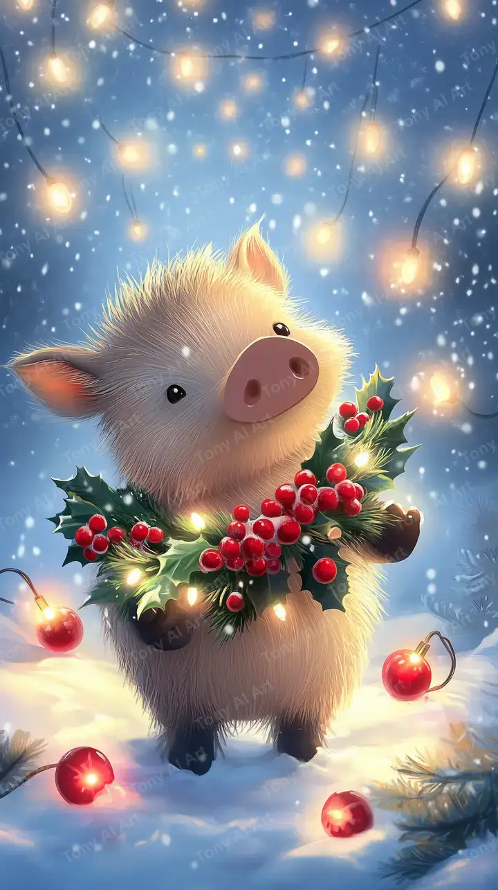 300 DPILợn Trắng Tết Neon Bokeh - Hình Nền AI Art 4K