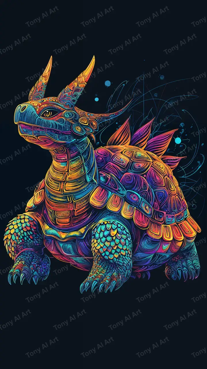 Hình nền Quy linh phong thủy với hiệu ứng neon cosmic sắc sỡ, mandala pattern huyền bí, tải miễn phí 4K.