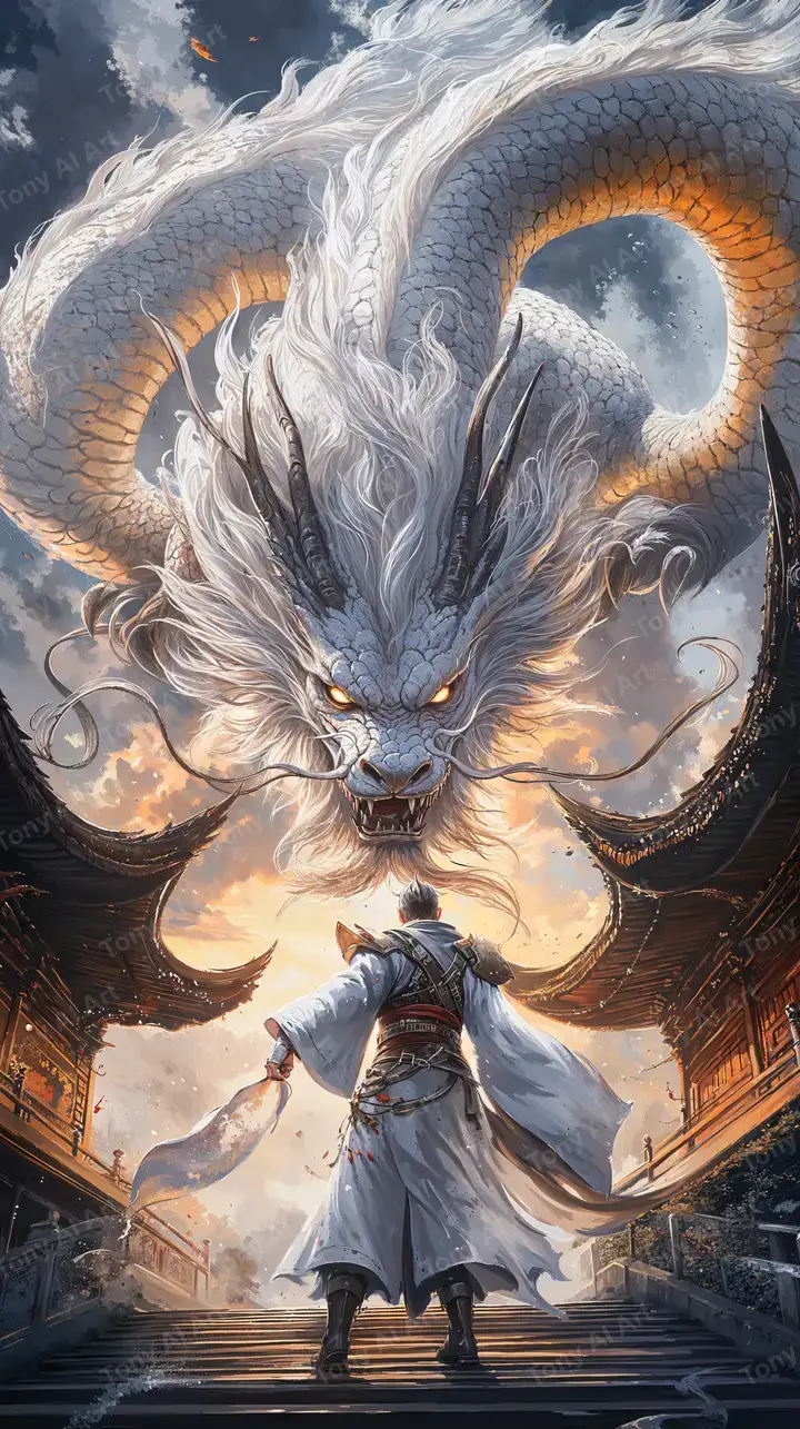 Rồng Trắng Cosmic Neon - Hình Nền AI Art 4K