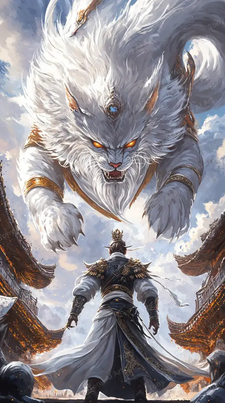 Mèo Linh Thần Lửa - Hình Nền AI Art Anime 4K
