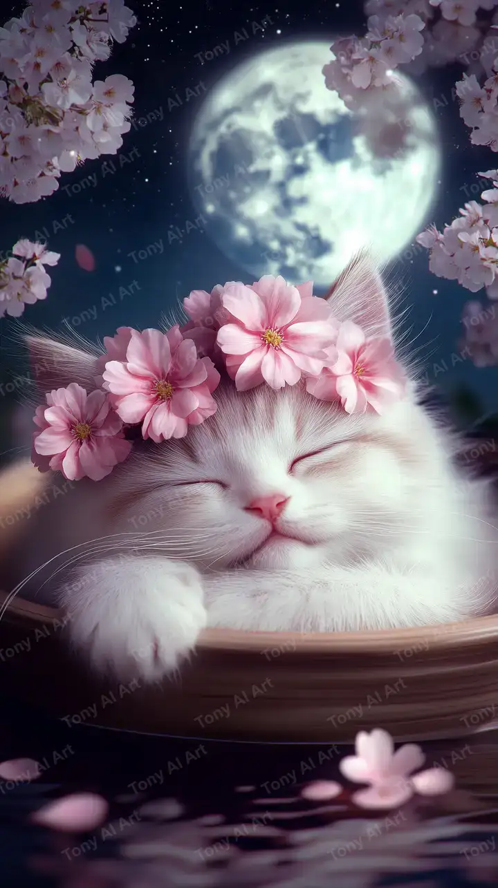 300 DPIMèo Trắng Hoa Hồng Đêm Sao - Hình Nền AI Art 4K