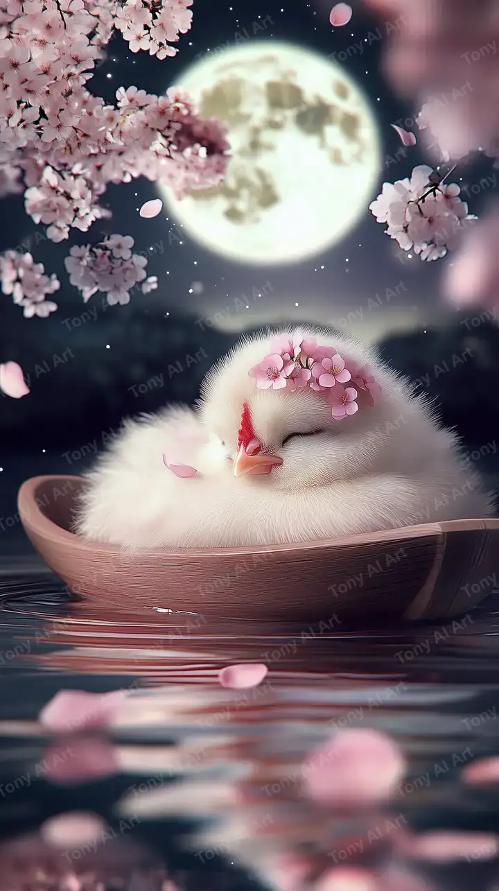 300 DPIThỏ Trắng Anh Đào - Hình Nền Trăng Sáng AI Art 4K