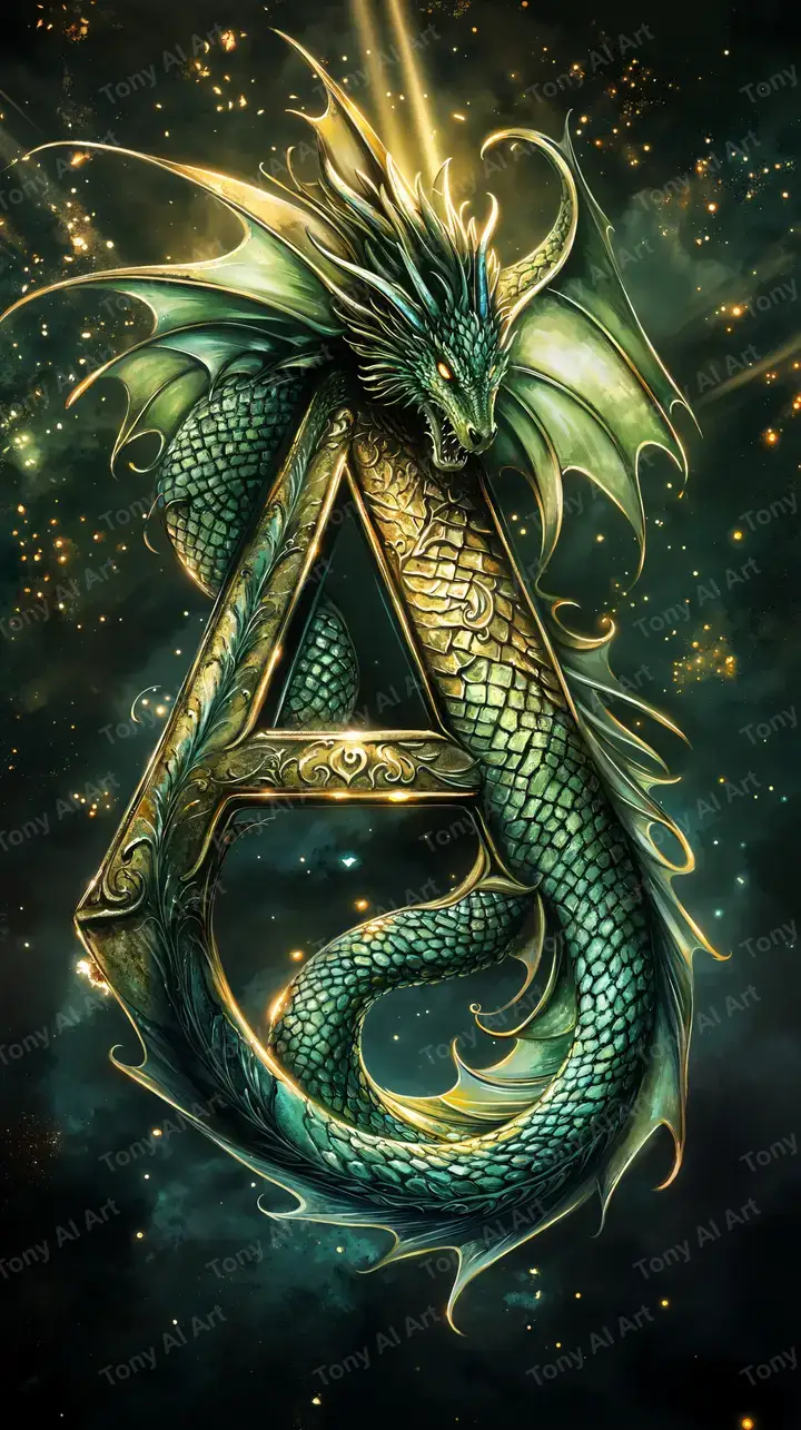 Hình nền rồng phong thủy AI art, hiệu ứng neon cosmic xanh vàng, lấp lánh sparkle, tải miễn phí 4K.