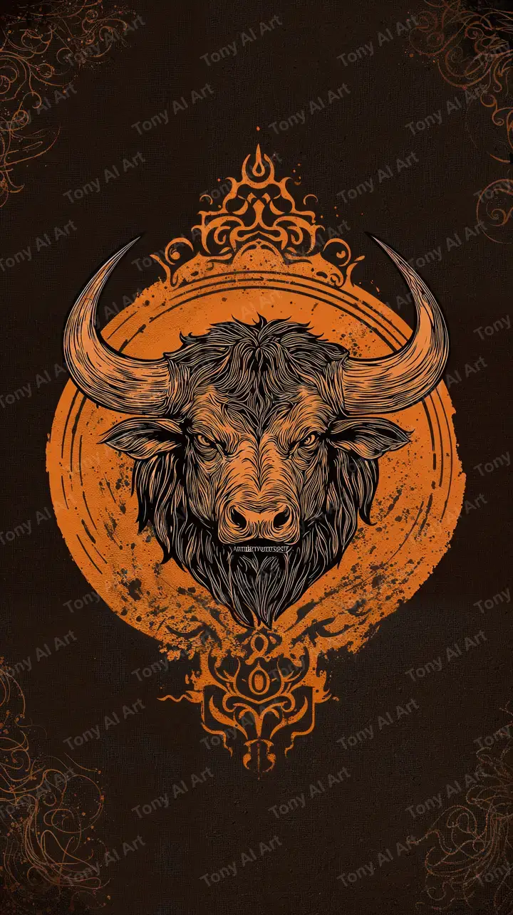Trâu Thiêng Phong Thủy - Hình Nền AI Art Cosmic Lightning 4K