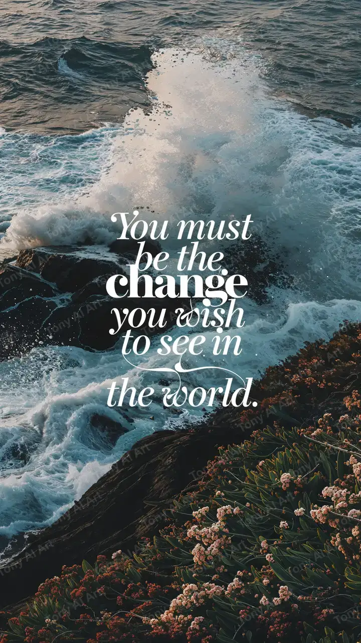 Hình nền sóng biển với quote inspirational, phong cách minimalist modern, tải miễn phí 4K - Tony AI Art