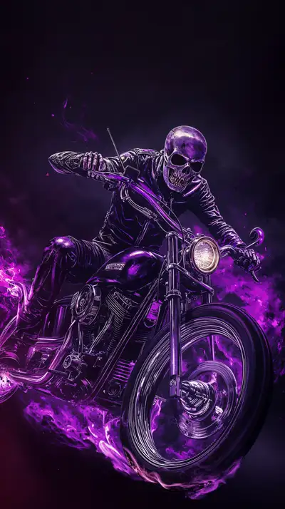 Biker Xương Neon Tím - Hình Nền Cyberpunk AI Art 4K