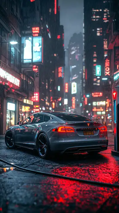 Ô Tô Tesla Neon Cyberpunk - Hình Nền AI Art 4K