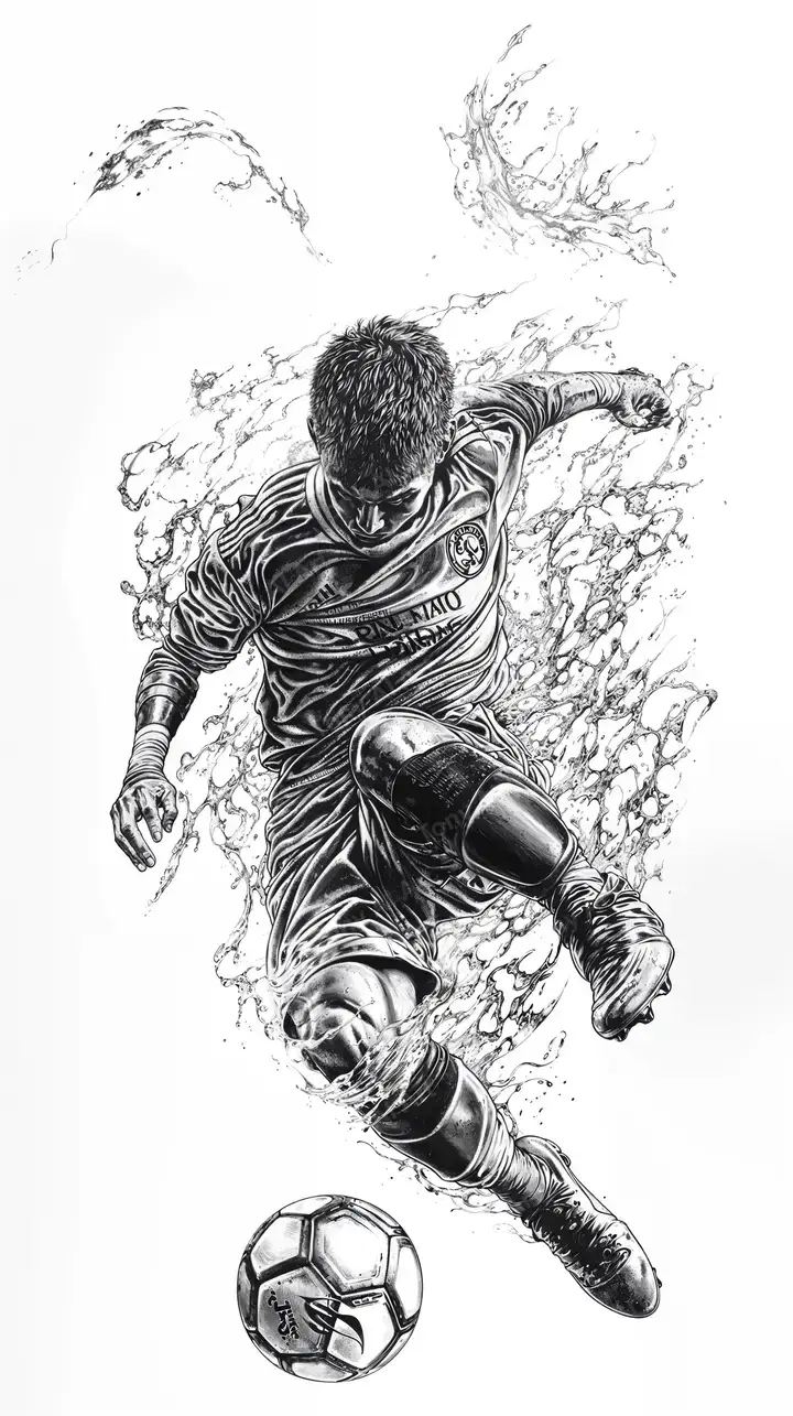 300 DPICầu Thủ Bóng Đá Nổ Tung - Hình Nền AI Art 4K Đơn Sắc
