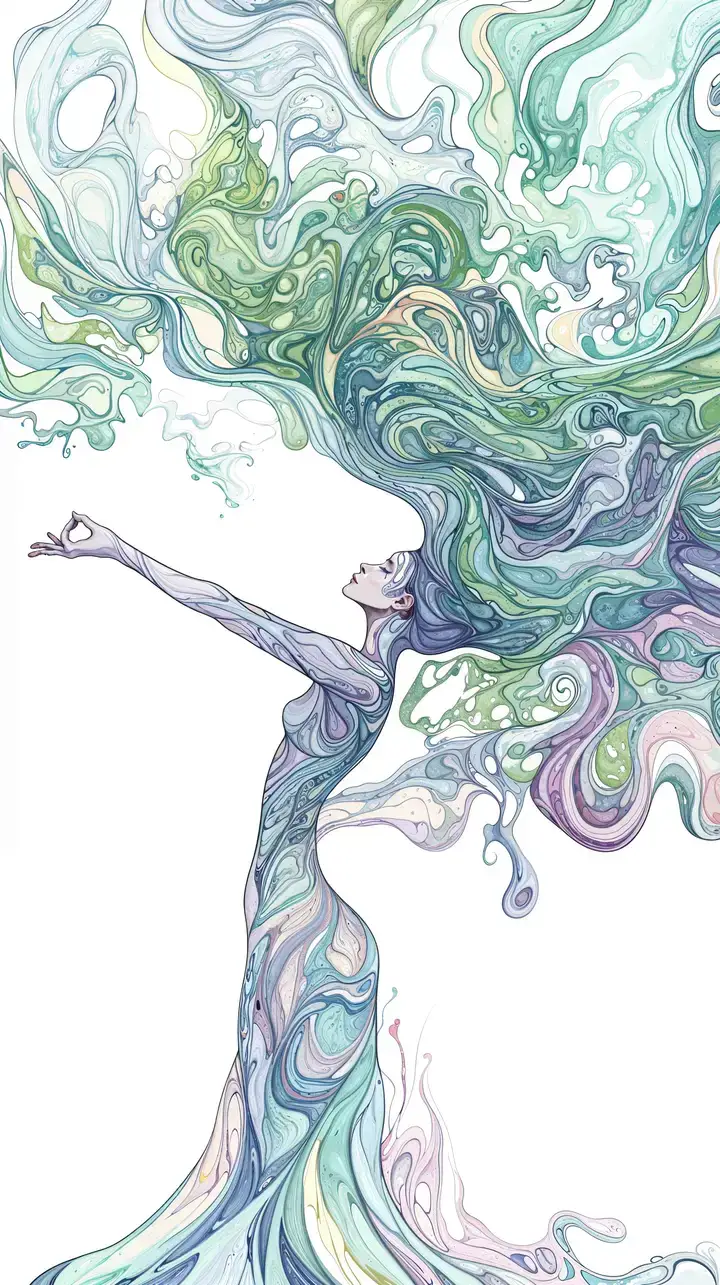 Hình nền AI art nữ thần chảy xanh lục, hiệu ứng liquid art tuyệt đẹp, tải miễn phí 4K.