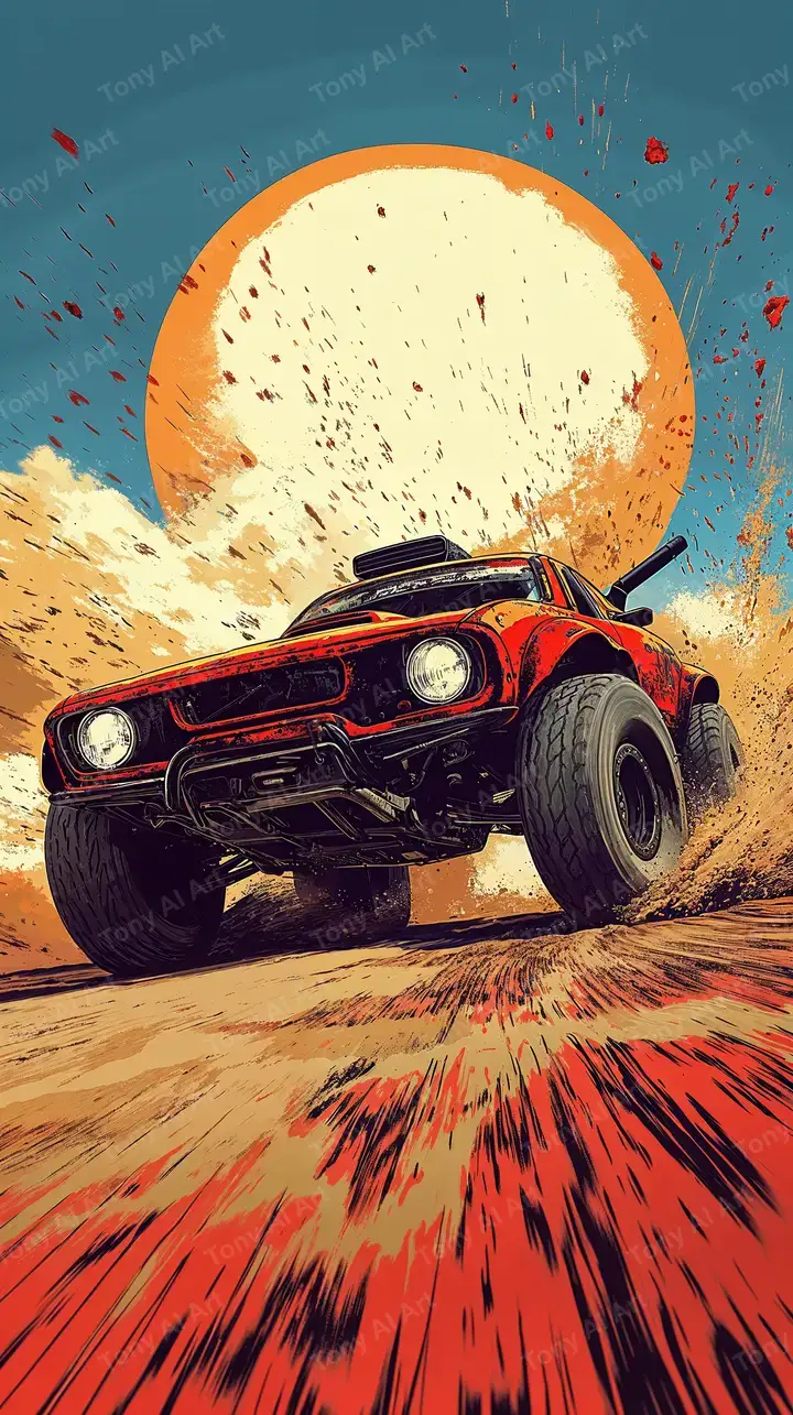 300 DPIÔ Tô Cổ Điển Tốc Độ Sa Mạc - Hình Nền AI Art 4K