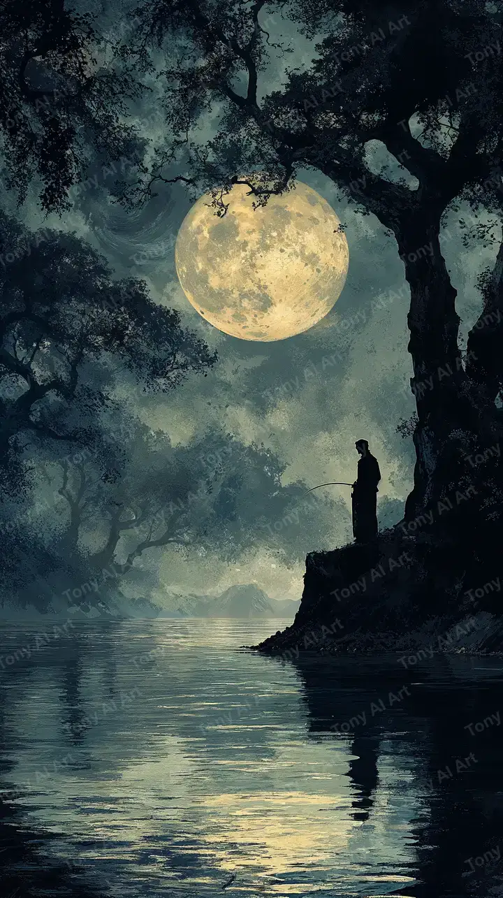 300 DPINgười Đơn Độc Trăng Vàng - Hình Nền AI Art Phong Thủy 4K