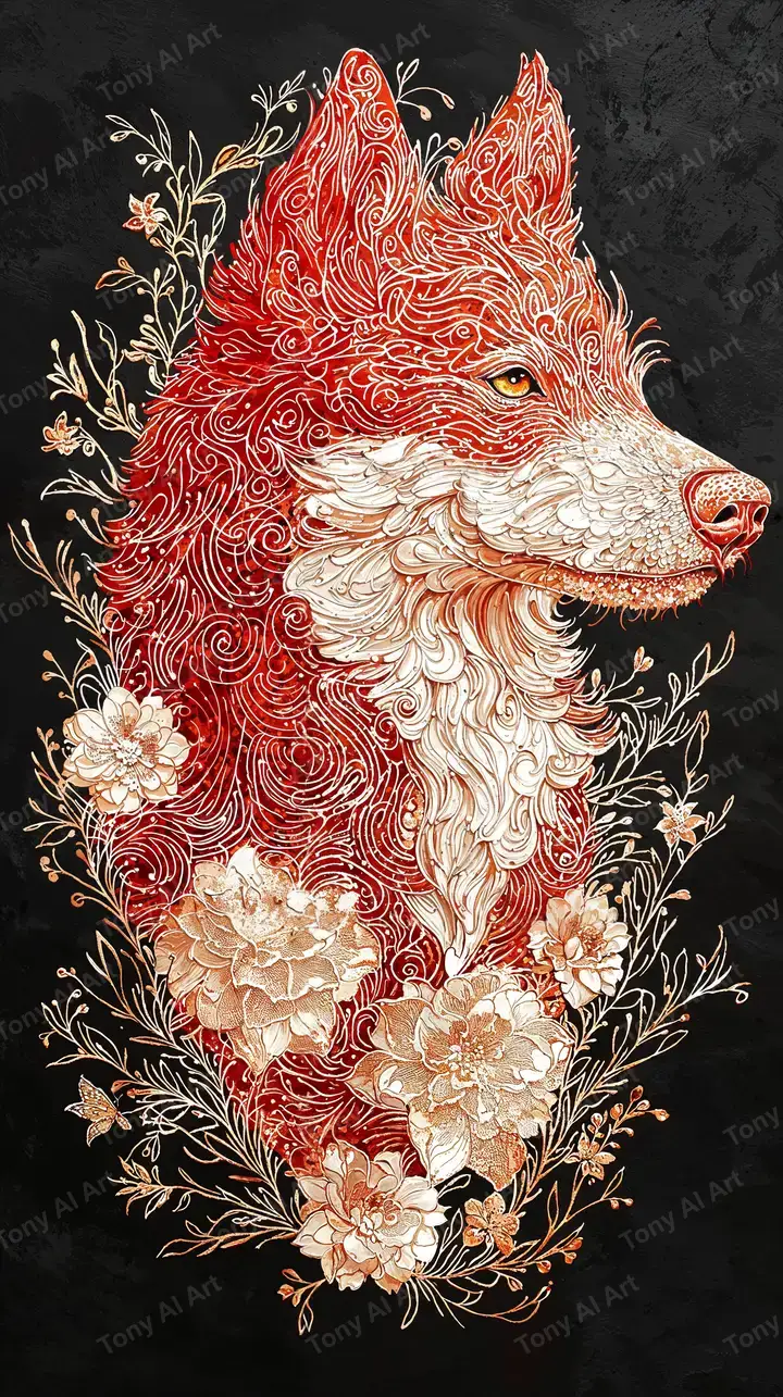 300 DPICáo Đỏ Trang Trí - Hình Nền AI Art 4K