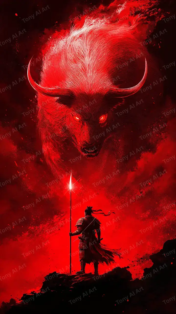 Trâu Thiêng Phong Thủy - Hình Nền AI Art Cosmic Lightning 4K