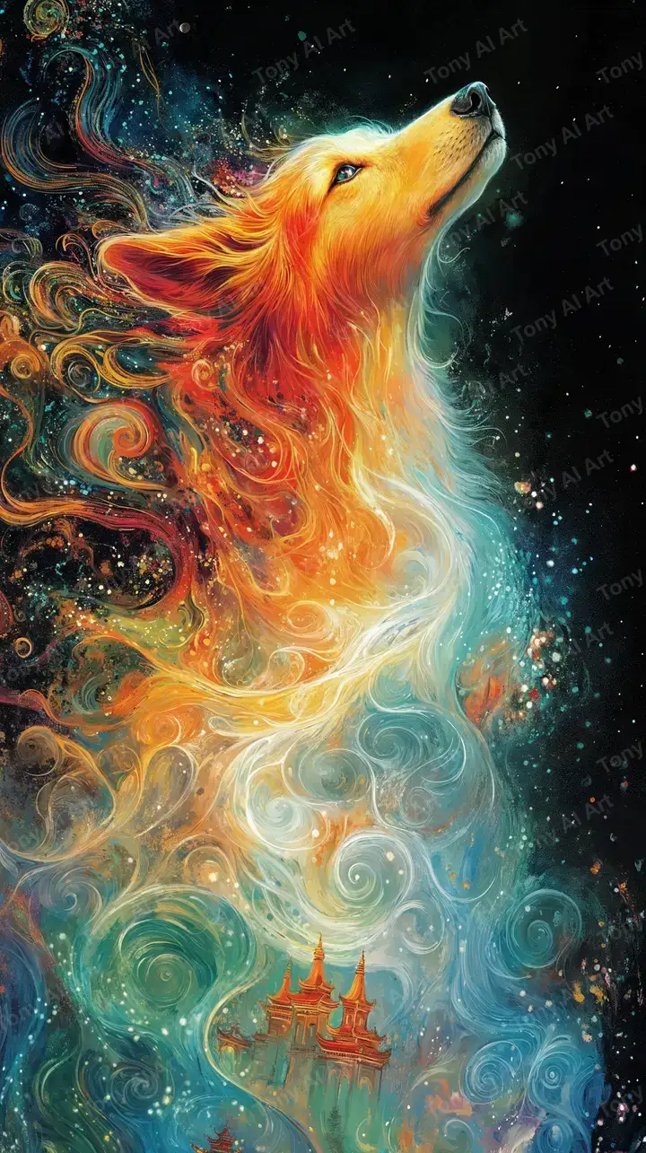 300 DPIHồ Ly Lửa Cosmic - Hình Nền AI Art Phong Thủy 4K