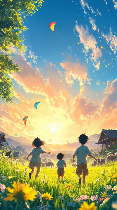 Gia Đình Thả Diều Hoàng Hôn - AI Art Thiên Nhiên 4K